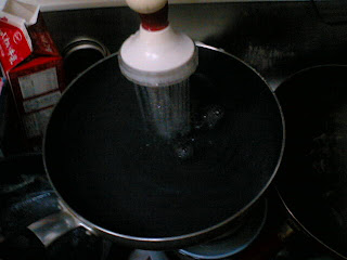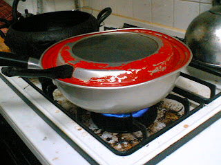 今回のは前回と違ってどこにも沸騰させたお湯に入れろとは書いてなかったんですが、Kが自分にコレを渡した時に全部沸騰させたお湯に入れろと言っていたので突っ込みます。沸騰しやすいように今回は蓋を用意!